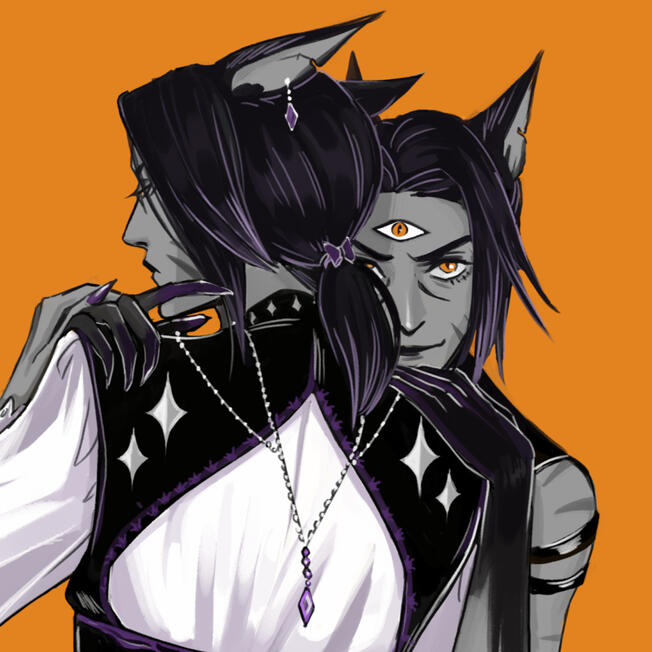 In game sessions or discord OKDark/ horror is my jam though I am comfortable with many themes. Clear OOC communication and consent by all parties is a must in any cases of Heavy or Mature RP.As far as senerios go, I'm interested in anything from casual to plot heavy to purely social. If you have an idea or plotline that you think Castor would be a good fit for, let me know! While he has no romantic or intimate relationships currently, I am not opposed to venturing in this direction with Castor. Though there could be potential for one-off intimate encounters should the scenario/plot/context permit, I prefer that developments like this form organically. Getting this close to Castor would probably be a relatively slow burn.Thanks for looking at Castor’s carrd! I’m not great at organizing all the little details about my characters so I might be adding or refining things for a bit. If there's anything you’re looking for more context for/want to know about him, feel free to shoot me a DM on twitter!@HighBlackWaltz or link below